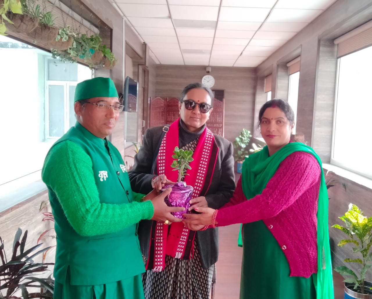 देहरादून (देशयोगी पंकज)। मुख्य सचिव राधा रतूड़ी को वृक्षमित्र के नाम से प्रसिद्व, शिक्षक डॉ त्रिलोक चंद्र सोनी और उनकी पत्नी किरन सोनी ने सचिवालय में उपहार स्वरूप कुबेर जी का पौधा भेंट कर नववर्ष व उत्तरायण त्योहार की बधाई दी। इसके अलावा, दंपत्ति ने श्रीमती रतूड़ी के वरिष्ठ प्रमुख निजी सचिव, मोहन लाल उनियाल व […]