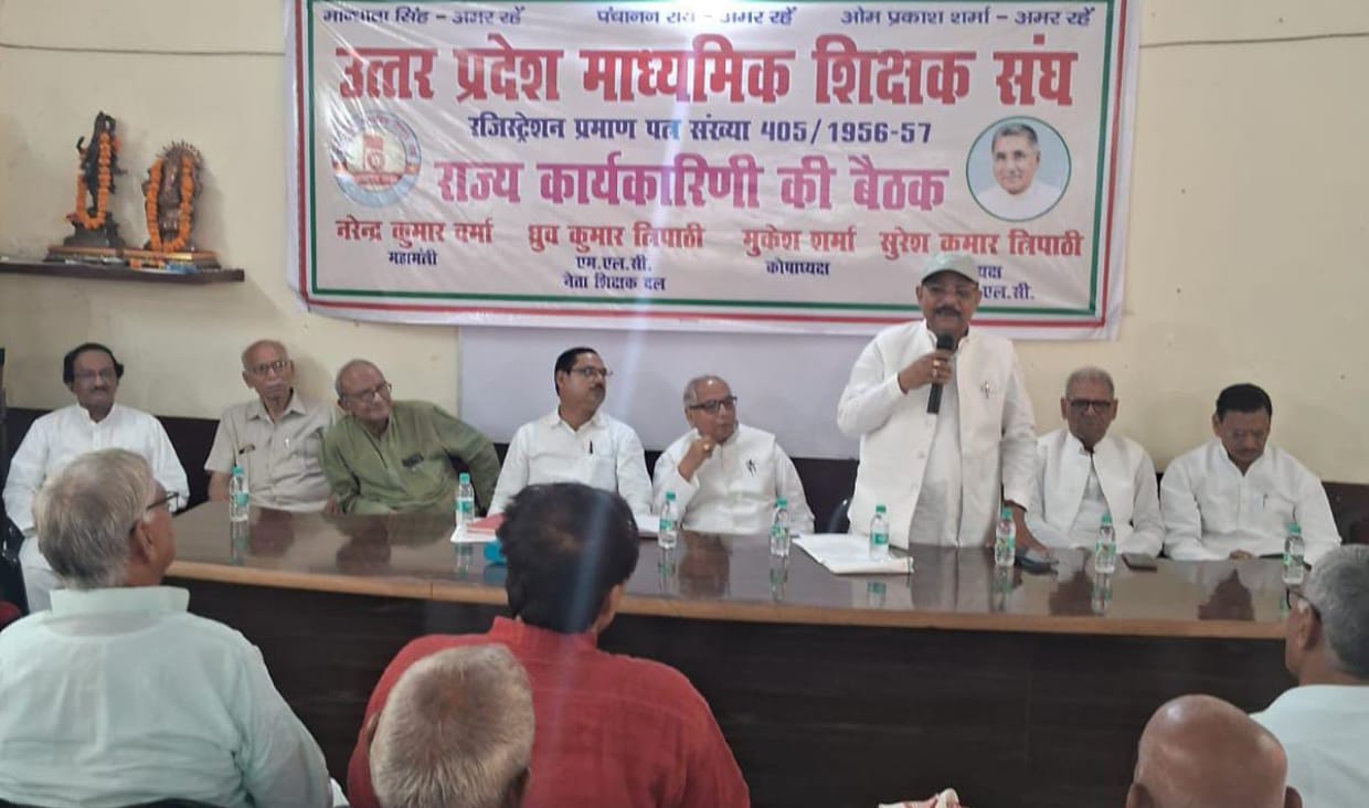 लखनऊ (देशयोगी अमर बहादुर)। वर्ष 1981 से लेकर 2020 तक नियुक्त, उत्तर प्रदेश के सहायता प्राप्त माध्यमिक विद्यालयो के 40 हजार शिक्षकों एवं कर्मचारियों की नियुक्तियो की सतर्कता अधिष्ठान से जांच कराये जाने के विरोध में तथा पुरानी पेन्शन की बहाली सहित अन्य मांगो को लेकर आगामी 24 सितम्बर से 07 अक्टूबर तक राज्य के मण्डलीय संयुक्त शिक्षा निदेशक कार्यालय पर धरना होगा तथा संयुक्त शिक्षा निदेशक के माध्यम से मुख्यमंत्री को ज्ञापन प्रेषित किया जाएगा। रविवार को यह निर्णय उत्तर प्रदेश माध्यमिक शिक्षक संघ के अध्यक्ष सुरेश कुमार त्रिपाठी की अध्यक्षता में लखनऊ के रिसालदार पार्क स्थित उत्तर प्रदेशीय प्राथमिक शिक्षक संघ के कार्यालय सभागार में हुई प्रान्तीय कार्यकारिणी की बैठक मे लिया गया। बैठक का संचालन महामंत्री नरेन्द्र कुमार वर्मा ने किया।