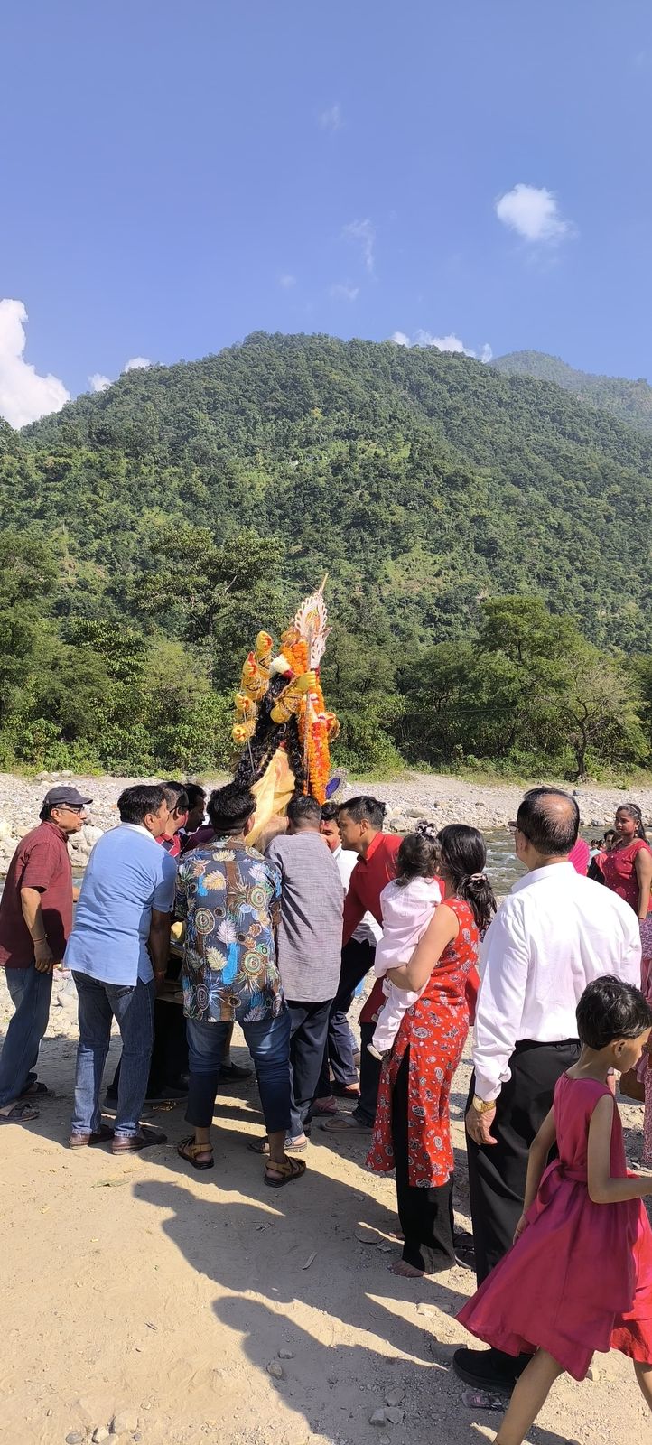 देहरादून (देशयोगी प्रभात)। दुर्गा पूजा कमेटी आराघर के संयोजक और बंगाली महासभा के प्रदेश अध्यक्ष अधीर मुखर्जी ने बताया कि रविवार को सभी महिलाओं ने माँ की विदायी में माँ को सिंदूर लगा कर और मिठाई खिलाकर माँ से अपने पति के दीर्घायु होने व अपने परिवार में सुख शांति व स्मृद्धि बनाये रखने के लिए मंगल कामनाएं की और अगले वर्ष आने के लिए निमंत्रण व निवेदन किया। भक्तों ने सिंदूर लगाकर एक दूसरे को विजया दशमी की बधाई दी और माँ की विदाई बैंड बाज़े और ढोल के साथ नृत्य कर की। उन्होंने बताया कि माँ दुर्गा के साथ सभी मूर्तियों का मालदेवता में विसर्जन किया और आश्चे बोछोर अबार होबे का जयकारा सभी ने लगाया। कलश में जल लाकर साय ८ बजे मंदिर में शांति ज़ल सभी भकतों को छिड़क कर आश्रीवाद दिया और सुख, शांति और समृद्धि की कामना की, मिष्ठान वितरित किया गया और एक दूसरे से गले लग कर बधाई दी।
